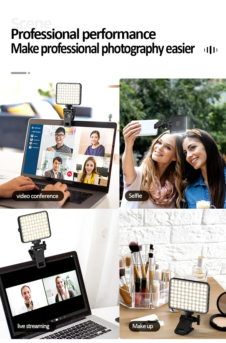 Led Fill Light Pocket Selfie Lamp for IPad Mobile Phone Laptop Fill Video Light with Front & Back Clip Adjusted 3 Light Modes