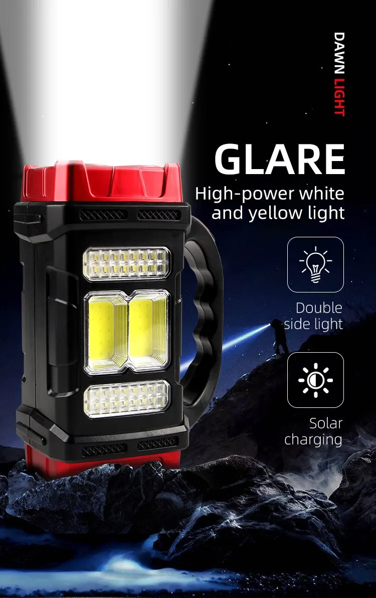 Solar Powered Rechargeable LED Multifunctional Portable Light USB Dual Light Source Outdoor Searchlight Camping Light Strong Fla